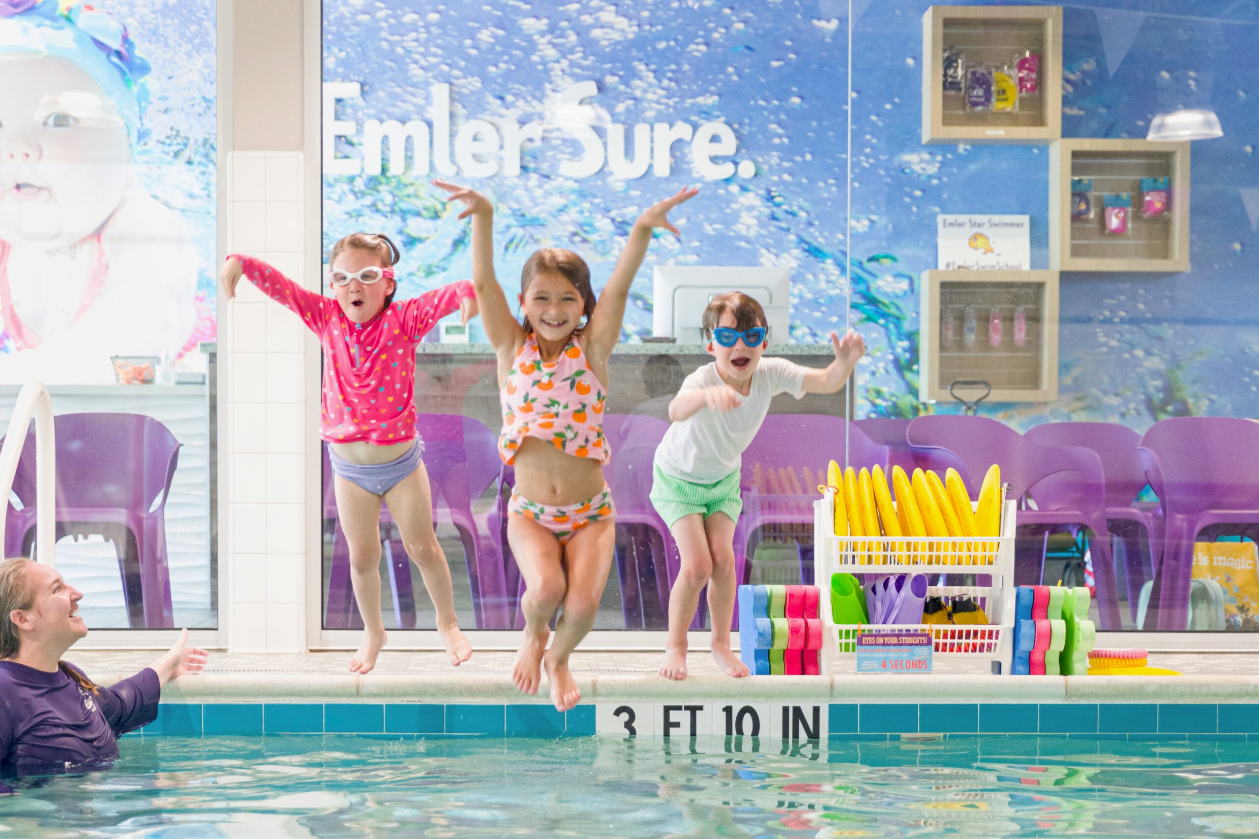 At Emler Swim School, we believe swimming isn’t just for summer, it’s a year-round life skill that every child deserves. From 2 months old to swim-team ready, our mission is to